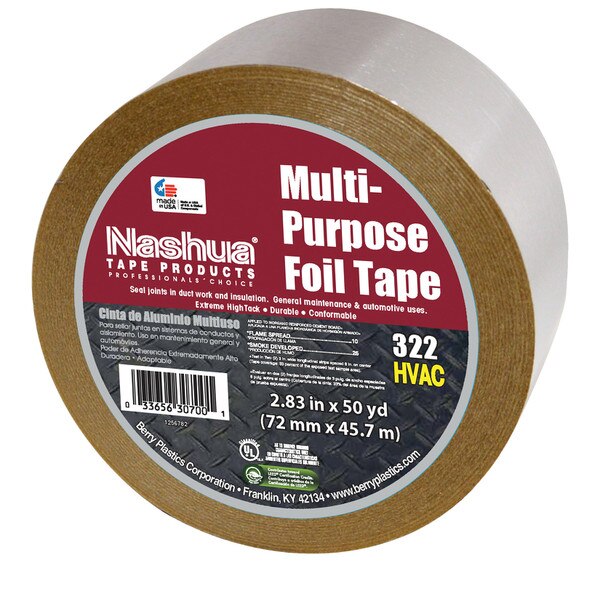 Nashua Multi-Purpose Foil Tape is specially designed for taping joints and seams against moisture and vapor on foil jacketing insulation. Appropriate for a variety of insulation uses. Used in the automotive industry for general repair.