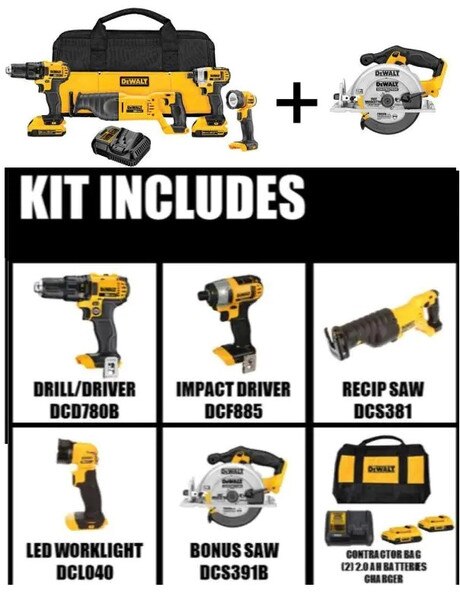 DEWALT 20V MAX LITHIUM ION CORDLESS COMBO KIT 6-TOOL Please log in to see price or purchase this item Quantity discounts available QuantityPrice SKU: D25281 Please allow 1-3 business days for delivery