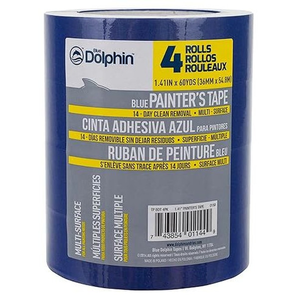 Blue Dolphin Painter's Tape, 1.41" x 60yd Roll, Pack of 4